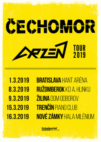„Po dlhšom čase máme samostatné turné. Okrem klasického repertoáru zahráme piesne z nového CD „Nadechnutí“. Koncert bude prierezom našej histórie. Turné sme naplánovali spolu so skupinou Arzén, ktorá je na scéne 35 rokov. Po prvýkrát sme sa videli pred mnohými rokmi v Terchovej. Pokrstili sme im dokonca s Frantou jeden album. Sú to fajn chalani, ktorí majú radi hudbu a baví ich čo robia,“ plánuje huslista, spevák a gitarista kapelyKarel Holas. Skupina Arzén si na turné pozvala aj hostí. Zahrá s nimi Ľuboš Tomaščík na klávesové nástroje a špeciálny hosť bude Nebeská muzika z Terchovej. Arzén spolupracuje s týmto hudobným telesom takmer 20 rokov. Nahrali spolu aj CD skupiny Arzén „Ešte raz“ v unplugged verzii v roku 2000. Nenechajte si ujsť staré aj nové hity od Čechomoru a Arzénu, veľkolepá šou vypukne 1. marca v Bratislave. Jedinečné spojenie dvoch obľúbených kapiel potom pokračuje v Ružomberku, v Žiline, v Trenčíne a v Nových Zámkoch! Poponáhľajte sa s kúpou vstupeniek, pretože Žilina hlási vypredané! Vstupenky na turné si môžete kúpiť v sieti Ticketportal.