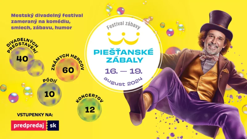 Unikátny festival Jozefa Vajdu láka do Piešťan všetkých, ktorí sa chcú zabaviť, pozrieť si najlepšie divadelné komédie, ale aj zábavné predstavenia pre najmenších. Mesto Piešťany ožije výnimočným festivalom s bohémskou atmosférou. Vyše 60 známych hercov zavíta počas víkendu do kúpeľného mesta a odohrá 40 komediálnych predstavení na rôznych pódiách, ktoré budú pripravené v parku, v prírodnom kine, na schodoch pri Dome umenia, v hudobnom pavilóne, dokonca predstavenie Kontrabas s Martinom Hubom sa odohrá v noblesnom parčíku hotela Thermia Palace na Kúpeľnom ostrove. Celý program je k dispozícii na stránke piestanskezabaly.sk