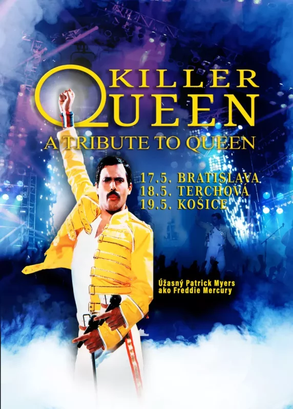 Na Slovensku ožije legendárna skupina Queen! Fanúšikovia Freddieho Mercuryho si všetky jeho megahity zaspievajú na unikátnej show KILLER QUEEN, ktorá na budúci rok v máji dorazí priamo z Londýna! Najznámejšia celosvetovo uznávaná show ako pocta Freddiemu Mercurymu a Queenu zavíta do Bratislavy, Terchovej a Košíc. Známe hity vrátane A Kind Of Magic, I Want to Break Free, Bohemian Rhapsody, Radio Ga Ga či The Show Must Go On zaznejú v podaní skvelého speváka Patricka Meyersa!
