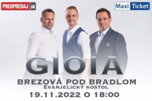 S trojicou spevákov pop-operného zoskupenia GIOIA sa ich priaznivci budú môcť stretnúť už túto sobotu 19.11 o 18:00 na unikátnom romantickom koncerte v evanjelickom kostole v Brezovej pod Bradlom.