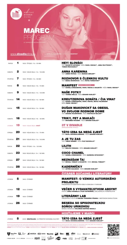 - autorský projekt o mladých radikáloch Manifest s diskusiou po predstavení v réžii Pavla Viechu (8. marec);