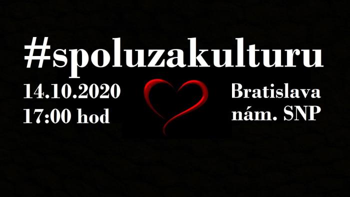 Zástupcovia slovenskej kultúrnej obce a kreatívneho priemyslu sa spojili a na 14. októbra 2020 pripravujú podujatie SPOLU ZA KULTÚRU. Pokojná manifestácia sa začne na bratislavskom Námestí SNP pričom nasledovať budú ďalšie akcie po celom Slovensku. Podujatie bude pokojné, dôstojné a väčšiu časť aj úplne tiché – ako symbol umlčania kultúry. Počas celej akcie budú veľmi dôsledne dodržané všetky potrebné opatrenia, súvisiace s pandémiou COVID-19, vrátane kontroly správneho nasadenia rúšok.
