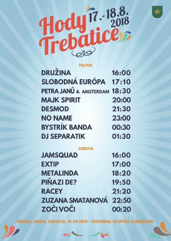 Už tento piatok štartujú na Motokárovej Dráhe v Trebaticiach obľúbené hody! Festival Hody Trebatice pri Piešťanoch ponúknu 17. a 18. augusta skvelú zábavu a koncerty Majka Spirita, Zuzany Smatanovej a skupín No Name, Desmod, Zoči Voči, Družina, Slobodná Európa, Extip či Metalinda. Zaspievajú aj zahraniční hostia – česká stálica Petra Janů a britská popová legenda Racey. Nenechajte si ujsť Hody v Trebaticiach, šou vypukne v piatok 17. augusta od 16:00.