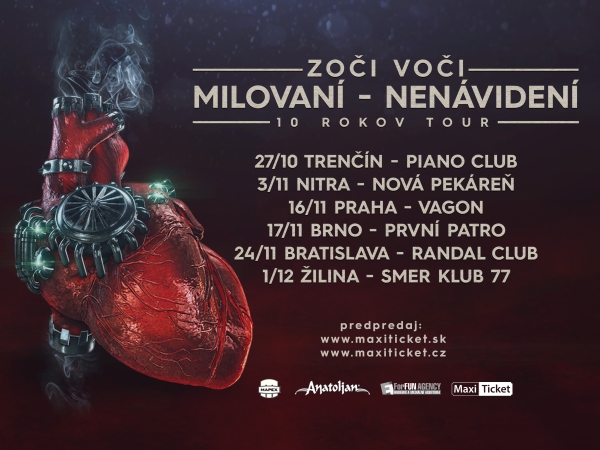 Klubové turné kapely Zoči Voči, na ktorom vystúpi aj množstvo zaujímavých hostí sa začína už na budúci týždeň. Poznáme šesť kapiel, ktoré spolu s nimi oslávia desiate výročie od vydania albumu Milovaní – Nenávidení.