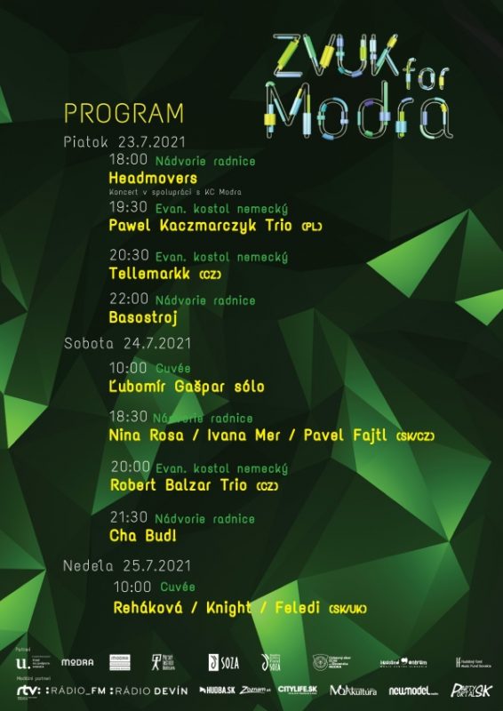 Festival z verejných zdrojov podporil Fond na podporu umenia. Partnermi festivalu sú Mesto Modra, Hudobný fond, Hudobné centrum, Soza a Sociálny a kultúrny fond SOZA a Poľský Inštitút. Za podporu a spoluprácu ďakujeme KC Modra a ECAV Modra.